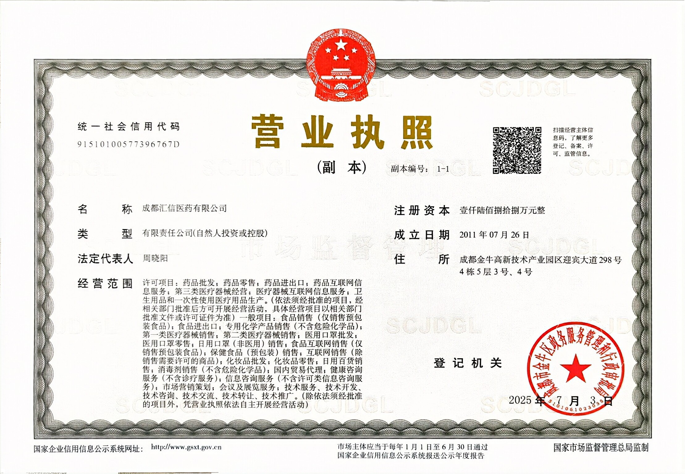 成都汇信医药有限公司成立于2011年7月;其前身是2006年2月成立并于同年5月通过国家GSP认证的四川本草堂药业有限公司新特药分公司经过改制、重组而成。