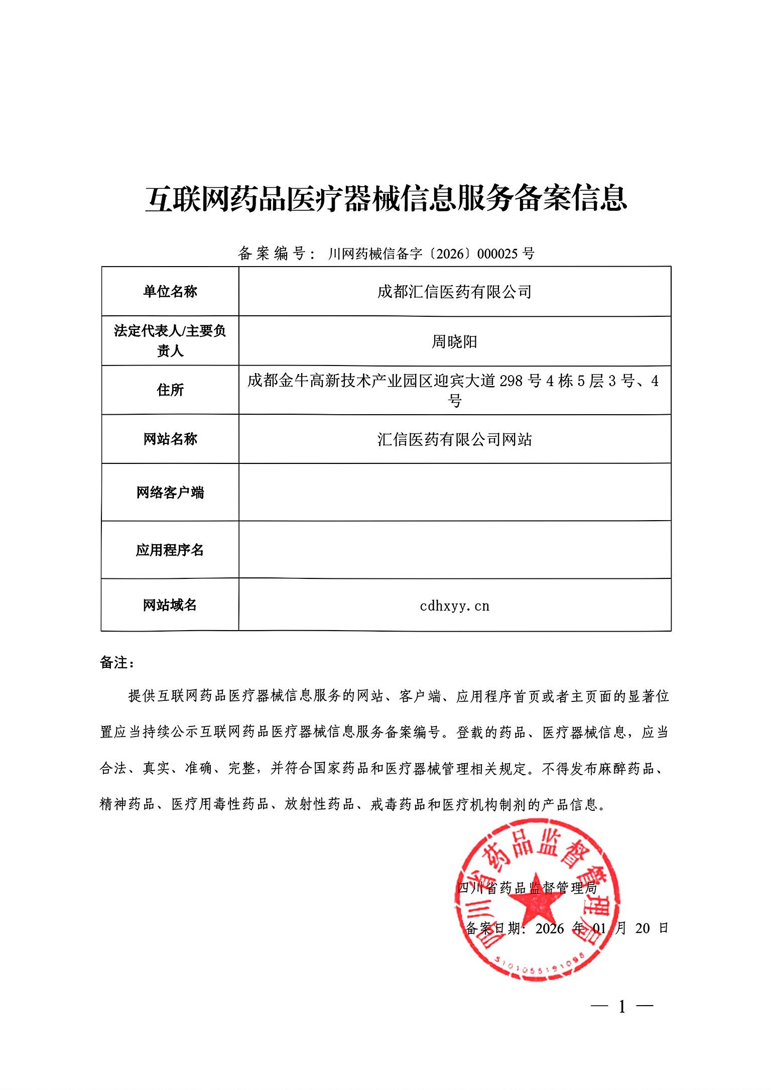 成都汇信医药有限公司成立于2011年7月;其前身是2006年2月成立并于同年5月通过国家GSP认证的四川本草堂药业有限公司新特药分公司经过改制、重组而成。